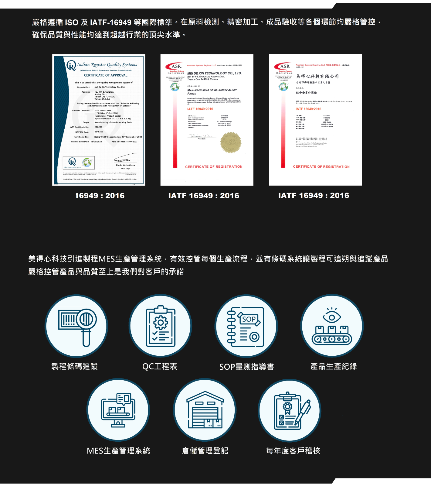 遵循ISO及IATF-16949等國際標準。在原料、加工、驗收等各個環節均嚴格管控,確保品質與性能均達到超越行業的頂尖水準。